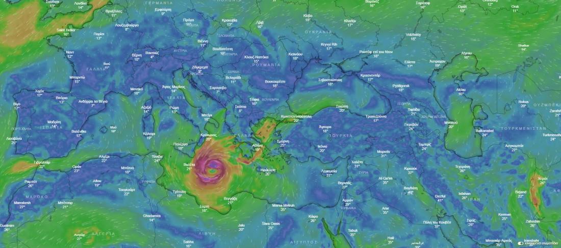 Αυτό που έχει ενδιαφέρον είναι πως τα ιταλικά μετεωρολογικά δίκτυα βλέπουν τη δημιουργία ενός τυφώνα κατηγορίας 1 ή 2 ο οποίος θα κινηθεί με ριπές ανέμου που θα φτάσουν τα 160χιλ/ώρα.