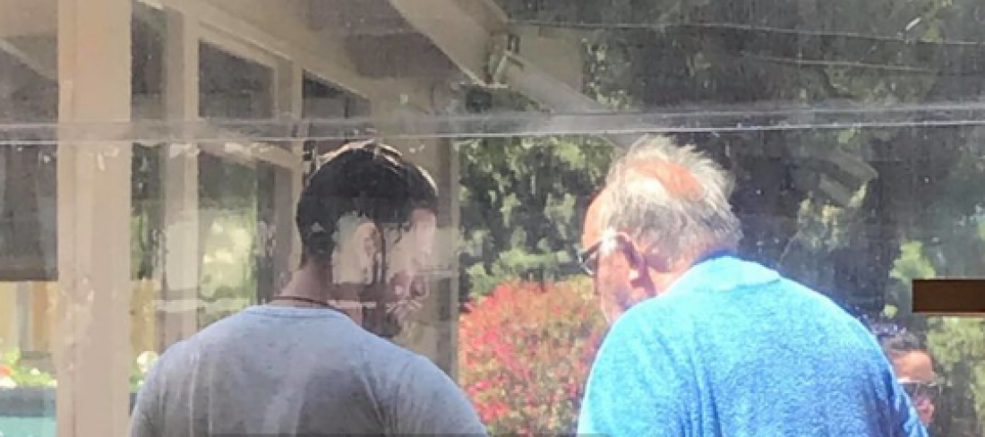 Αφού κολύμπησε, τυλίχθηκε με ένα μπλε μπουρνούζι και με την βοήθεια ενός μπαστουνιού βγήκε να απολαύσει τον ανοιξιάτικο ήλιο.