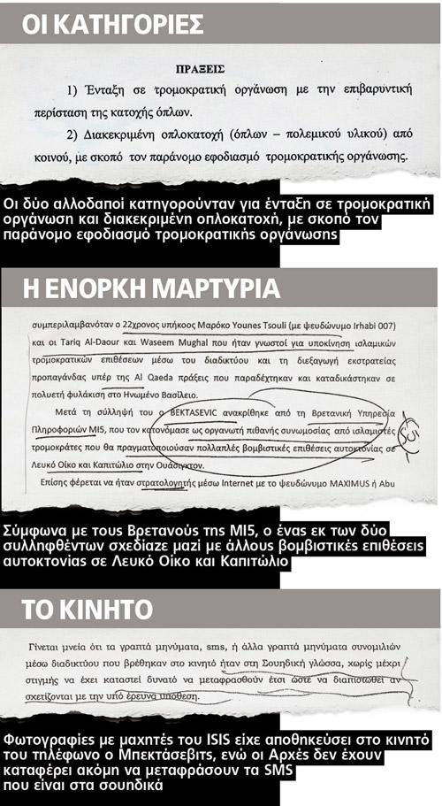 Το «Πρώτο Θέμα» έφερε στο φως τις δικογραφίες τους, όπου ο σεσημασμένος Μιρσάντ Μπεκτάσεβιτς βρίσκεται σε κεντρικό πλάνο καθώς σύμφωνα με την εφημερίδα,σχεδίαζε μαζί με άλλους σωρεία βομβιστικών επιθέσεων αυτοκτονίας στον Λευκό Οίκο και στο Καπιτώλιο στην Ουάσινγκτον.