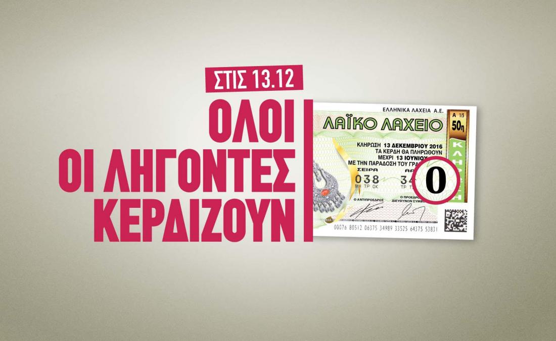Tην ερχόμενη «Τρίτη και 13» Δεκεμβρίου 2016, κανένας δεν θα μπορεί να ισχυριστεί ότι «φταίει η ημέρα» που δεν κέρδισε κάποιο ποσό στο λαϊκό λαχείο.