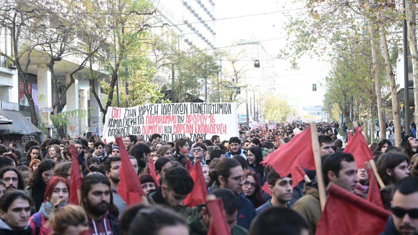 Πορείες φοιτητών, πανεπιστημιακών και μαθητών κατά της ίδρυσης των ιδιωτικών πανεπιστημίων έλαβαν χώρα σήμερα το μεσημέρι σε Αθήνα, Θεσσαλονίκη και άλλες πόλεις της Ελλάδας.