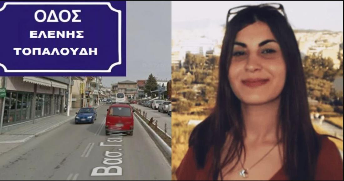 Το όνομα της Ελένης Τοπαλούδη θα πάρει κεντρική οδός του Διδυμοτείχου, ύστερα από σχετική απόφαση του δημοτικού συμβουλίου, με την επίσημη τελετή ονοματοδοσίας να σχεδιάζεται από τη δημοτική αρχή για τον ερχόμενο Νοέμβριο, με αφορμή τη συμπλήρωση τριών χρόνων από τη δολοφονία της νεαρής φοιτήτριας.