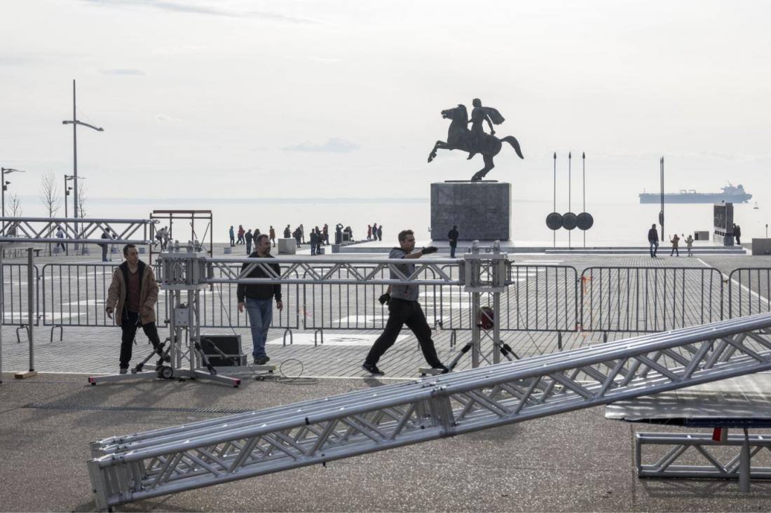 Ήδη τα τεχνικά συνεργεία έχουν στήσει την εξέδρα, η οποία θα έχει φόντο το Άγαλμα του Μεγάλου Αλεξάνδρου, και τα ηχητικά συστήματα. Πλήθος εθελοντών πήρε μέρος στις εργασίες προετοιμασίας.