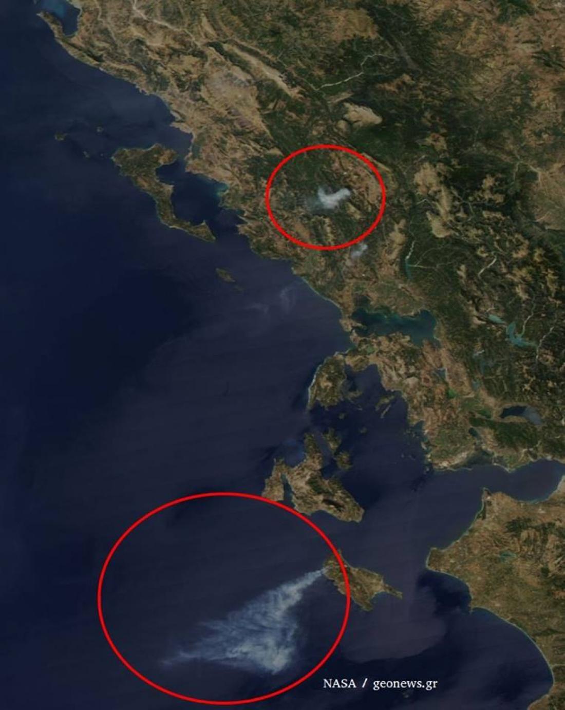 Αν και η φωτογραφία τραβήχτηκε από το διάστημα είναι ορατές η φωτιά τόσο στα Γιάννενα όσο και στη Ζάκυνθο , όπου στη δεύτερη η φωτιά μαίνεται για τρίτη μέρα.