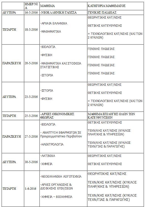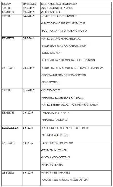 ΠΡΟΓΡΑΜΜΑ ΠΑΝΕΛΛΑΔΙΚΩΝ ΕΞΕΤΑΣΕΩΝ 2016 ΗΜΕΡΗΣΙΩΝ ΕΠΑΛ με το ΝΕΟ ΣΥΣΤΗΜΑ