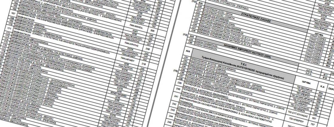 Αν και πάλι υπάρχει ισοβαθμία, εισάγονται όλοι οι ισοβαθμούντες ανεξάρτητα από τη σειρά που δήλωσε ο καθένας το τμήμα αυτό, εκτός αν πρόκειται για Στρατιωτικές, Αστυνομικές ή Πυροσβεστικές Σχολές.