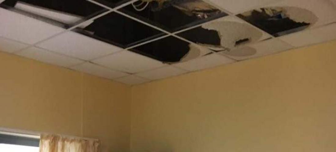 Παραλίγο να θρηνήσουμε και πιθανά θύματα μετά και την πτώση οροφής σε γραφείο ιατρού ακτινοθεραπεύτριας εν ώρα εργασίας. Η οροφή μετά και τη διάβρωσή της από διαρροή των υδραυλικών, έπεσε πάνω στο γραφείο της ιατρού, που ευτυχώς έλλειπε σε άδεια, διαφορετικά μπορεί και να είχαμε και σοβαρό τραυματισμό.