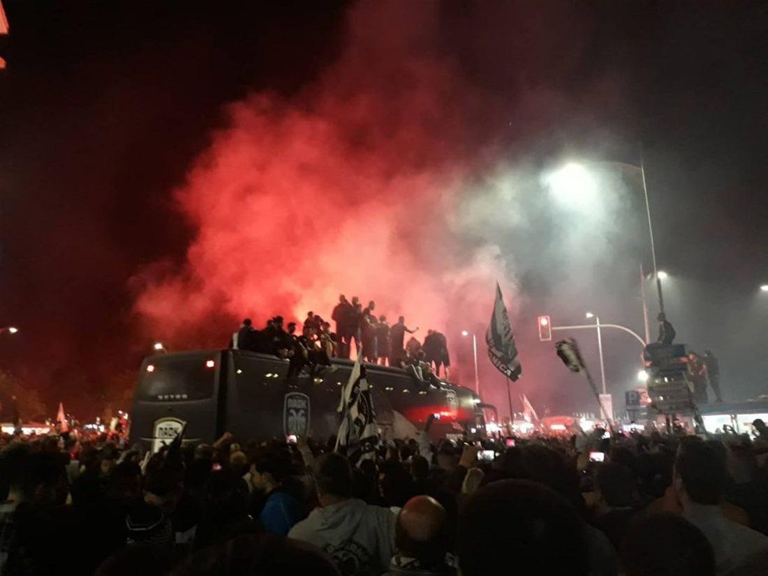 Το «ασπρόμαυρό» πούλμαν έφτασε στο σημείο κατατεθέν λίγο μετά τις 4 τα ξημερώματα. Εκεί τους περίμεναν χιλιάδες υποστηρικτές τους και γιόρτασαν μαζί τους ως το πρωί την πιο πετυχημένη χρονιά στην ιστορία του συλλόγου.