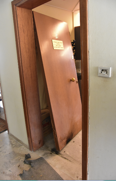 Όπως γίνεται γνωστό, η έκρηξη έγινε έξω από γραφείο λογίστριας, η οποία είναι υπεύθυνη και για τα οικονομικά του συσσιτίου του ναού της Ευαγγελίστριας Ναυπλίου . Γκρεμίστηκε η πόρτα του γραφείου, ενώ προκλήθηκαν και ζημιές.