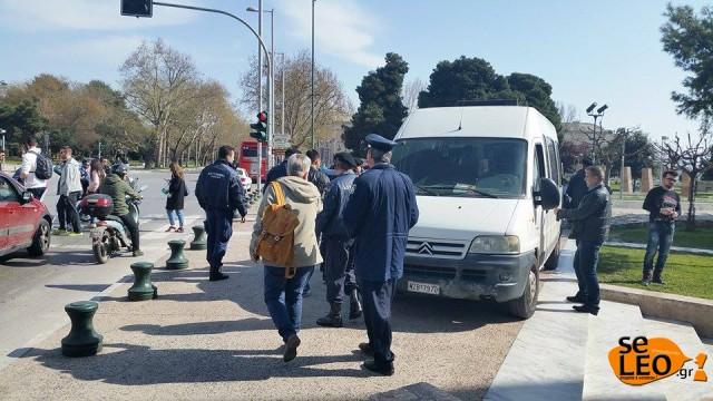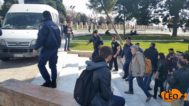 Το πανό κατέβηκε αργότερα από υπαλλήλους του Λευκού Πύργου , ενώ από την Αστυνομία έγιναν τρεις προσαγωγές.