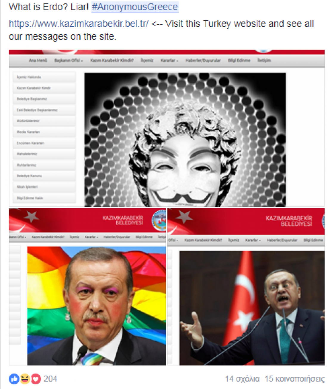 Ολοκληρώνοντας το "χτύπημά" τους, οι Anonymous Greece ανέβασαν το «κατόρθωμά» τους στο Facebook παραπέμποντας στην τουρκική ιστοσελίδα για να «θαυμάσουν» οι διαδικτυακοί χρήστες όλο το έργο τους!\