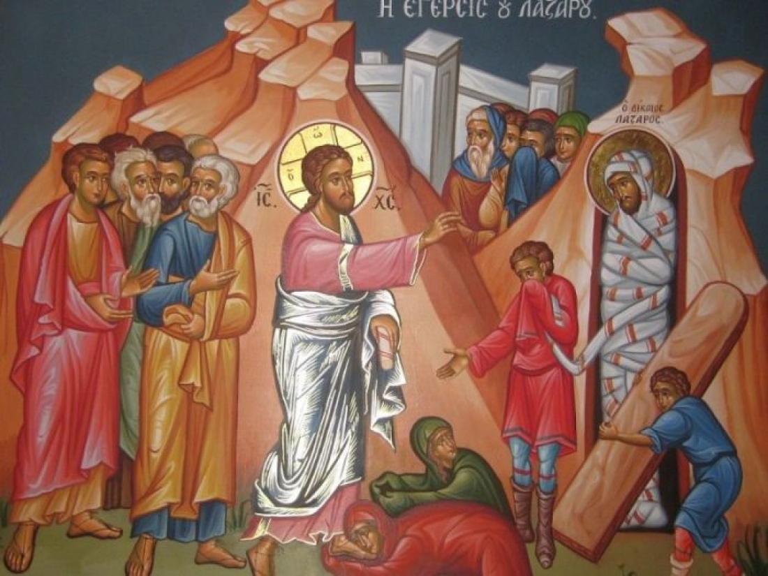 Η Εκκλησία μας γιορτάζει την Ανάσταση του Λαζάρου το τελευταίο Σάββατο της Μεγάλης Σαρακοστής. Ο Λάζαρος, φίλος τους Ιησού, ζούσε στη Βηθανία με τις αδελφές του Μάρθα και Μαρία. Ο Ιησούς ήταν έτοιμος να αναχωρήσει, όταν έφτασε αγγελιοφόρος από τη Βηθανία ο οποίος του ανήγγειλε ότι ο αγαπημένος του φίλος είναι άρρωστος. Μετά από τέσσερις μέρες ο Ιησούς φτάνει στη Βηθανία. Στο μεταξύ ο Λάζάρος είχε πεθάνει.