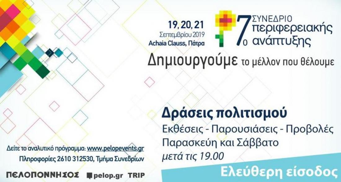 Συνδέοντας το παρελθόν, το παρόν και το μέλλον το 7ο Συνέδριο για την Περιφερειακή Ανάπτυξη, έχει συμπεριλάβει στο πρόγραμμά του μια σειρά από ανοικτές εκδηλώσεις πολιτισμού, με ελεύθερη είσοδο για το κοινό που έχουν προγραμματιστεί για την Παρασκευή 20 και το Σάββατο 21 Σεπτεμβρίου 2019, με στόχο τον διαρκή και διευρυμένο διάλογο με την τοπική κοινωνία.
