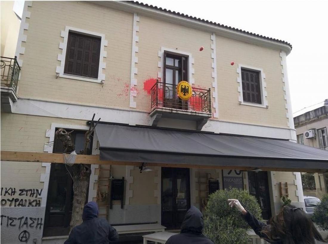 Πάτρα: Eπίθεση κουκουλοφόρων στο γερμανικό προξενείο (ΦΩΤΟ)