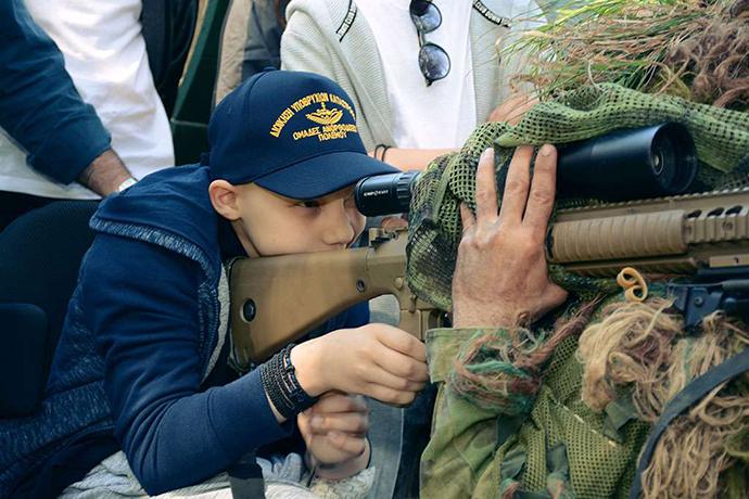 Τότε ο 13χρονος Γιώργος ξεναγήθηκε στην Διοίκηση, παρακολούθησε εκπαίδευση στον στίβο μάχης, επιβιβάστηκε σε όχημα και σκάφος ανορθοδόξου πολέμου, ενώ παρακολούθησε και παρουσίαση τακτικών μάχης και μεθόδων απόκρυψης.