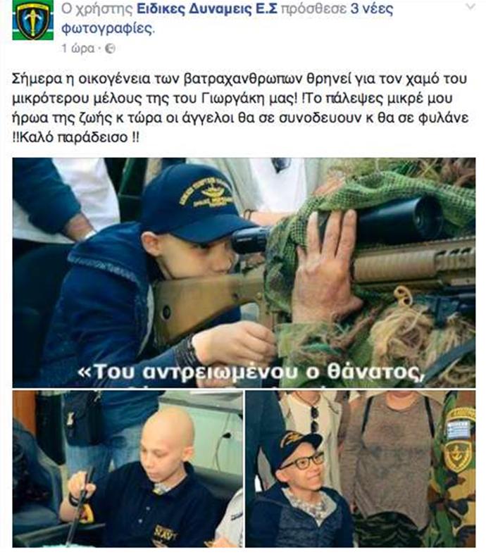 Σήμερα οι Ειδικές Δυνάμεις πενθούν και αποχαιρετούν τον 13χρονο ΟΥΚα, που είχε όνειρο να γίνει μέλος τους.