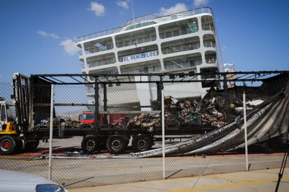 Κλίση 7 μοιρών λόγω μετακίνησης υδάτων από την πυρόσβεση, πήρε το πρωί το επιβατηγό οχηματαγωγό πλοίο "Ελευθέριος Βενιζέλος", στο οποίο εξακολουθούν να υπάρχουν μικρές εστίες φωτιάς στο γκαράζ του.