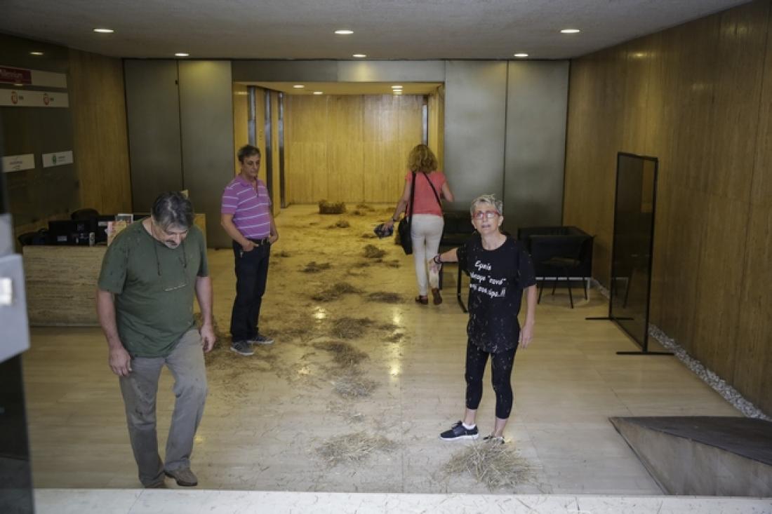 Ακτιβιστές βρέθηκαν στα γραφεία των ΑΝΕΛ στη Λεωφόρο Συγγρού και πέταξαν σανό στην είσοδο των γραφείων!