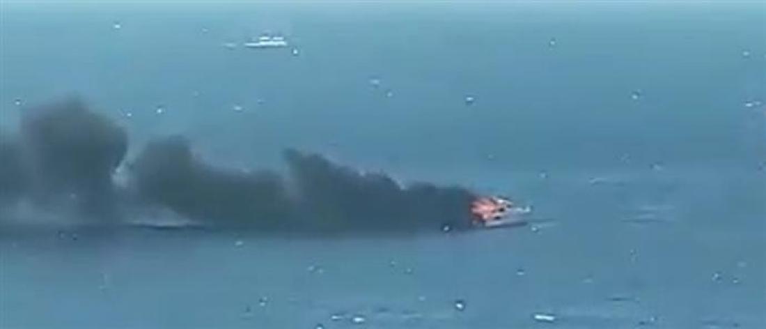 Φλεγόμενο σκάφος βούλιαξε στη Μύκονο (ΒΙΝΤΕΟ)
