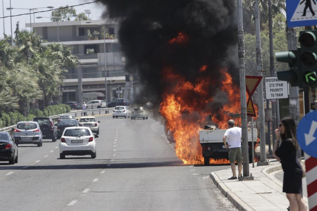 Κάτω από αδιευκρίνιστες συνθήκες ένα φορτηγό τυλίχτηκε στις φλόγες λίγο νωρίτερα στη Λεωφόρο Ποσειδώνος στο ύψος του Αλίμου.