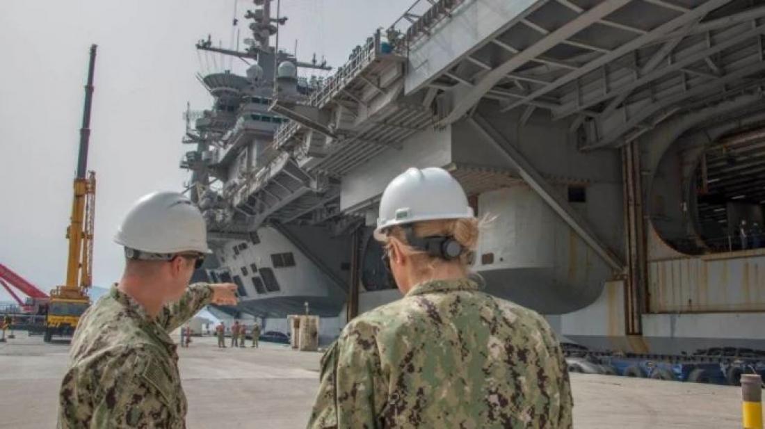 Το πυρηνοκίνητο αεροπλανοφόρο είχε καταπλεύσει στον όρμο της στις 23 Μαΐου με τη βοήθεια ρυμουλκών.