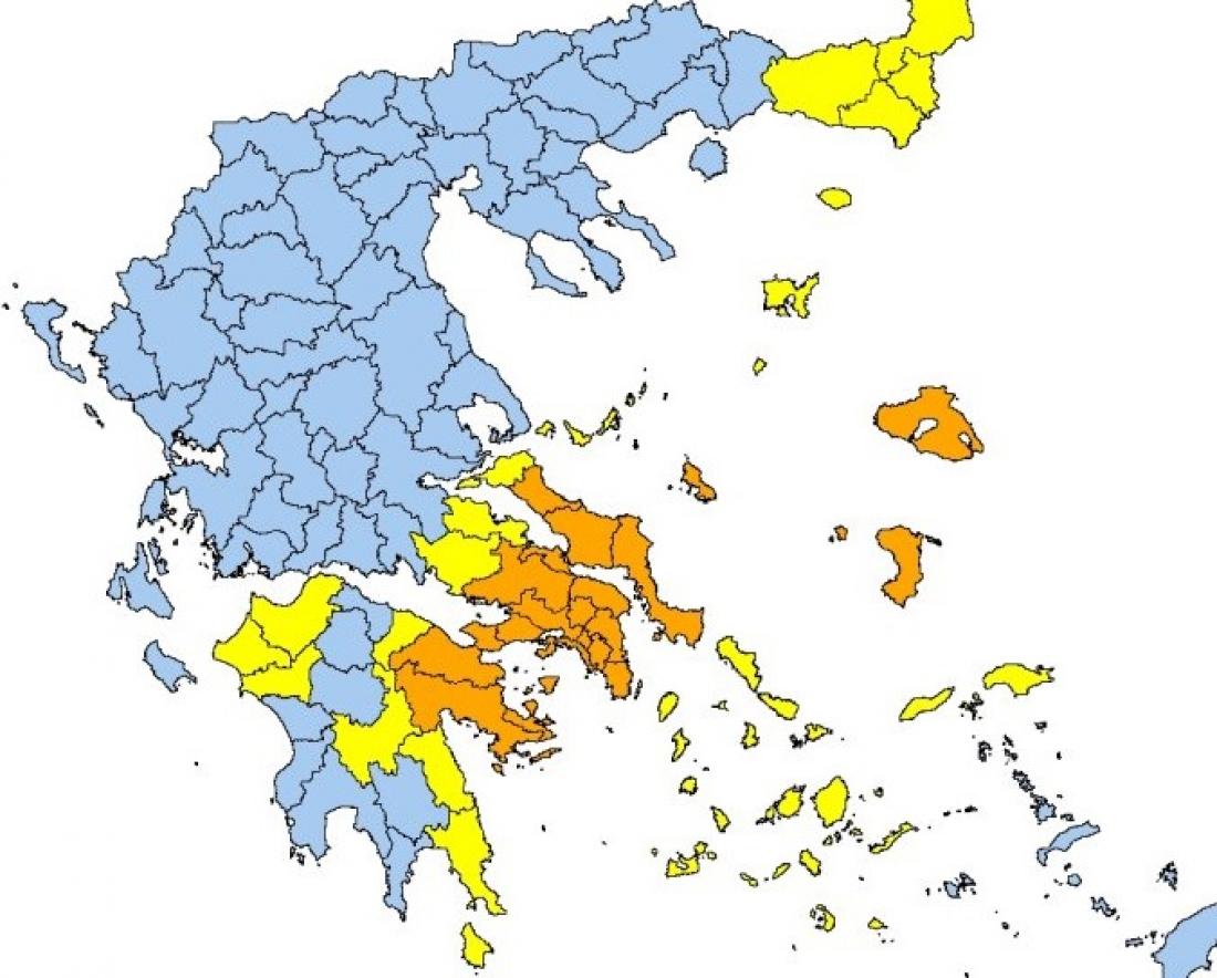 Σύμφωνα με το Χάρτη Πρόβλεψης Κινδύνου Πυρκαγιάς που εκδίδει η Γενική Γραμματεία Πολιτικής Προστασίας του Υπουργείου Εσωτερικών (www.civilprotection.gr), για σήμερα Πέμπτη 3 Αυγούστου, προβλέπεται πολύ υψηλός κίνδυνος πυρκαγιάς (κατηγορία κινδύνου 4) για τις εξής περιοχές: