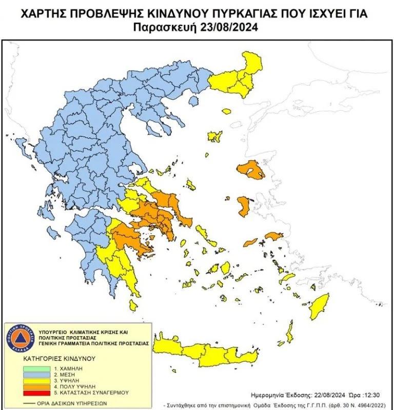 πυρκαγιάς (κατηγορία κινδύνου 4) προβλέπεται σήμερα Παρασκευή (23/08)