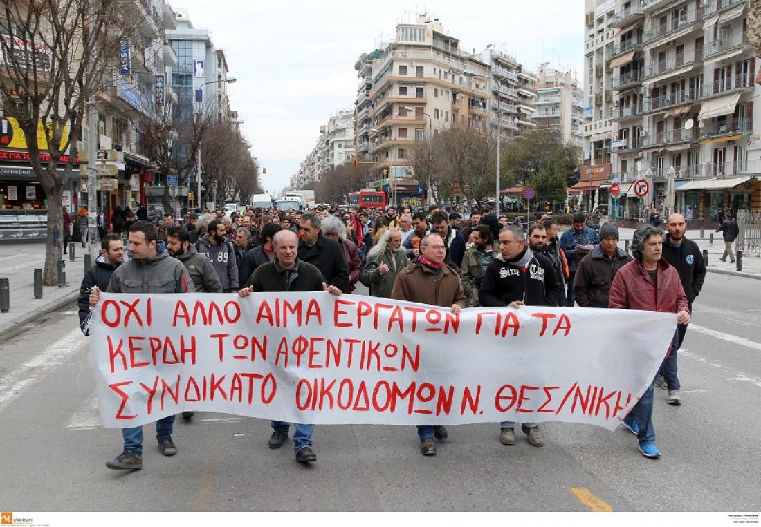 Με την πραγματοποίηση 24ωρης απεργίας σήμερα και με συγκέντρωση-πορεία σε ένδειξη πένθους, εκφράζουν την αντίδρασή τους για το θανατηφόρο δυστύχημα σε εργοτάξιο του Μετρό Θεσσαλονίκης τα μέλη του Συνδικάτου Οικοδόμων του νομού και οι εργαζόμενοι στο έργο (σσ: πενηντάχρονος χειριστής γερανοφόρου έχασε τη ζωή του, όταν το όχημα ανετράπη σε εργοτάξιο της επέκτασης του Μετρό στην Καλαμαριά, στη συμβολή των οδών Μεταμορφώσεως και Πόντου). Οι συγκεντρωμένοι, με τη συμμετοχή και εκπροσώπων του ΠΑΜΕ, ξεκίνησαν την πορεία τους από τον Σταθμό Αγίας Σοφίας του Μετρό, ενώ στη συνέχεια κατέληξαν μέσω της Εγνατίας στον Σταθμό Συντριβανίου, ολοκληρώνοντας την κινητοποίησή τους.