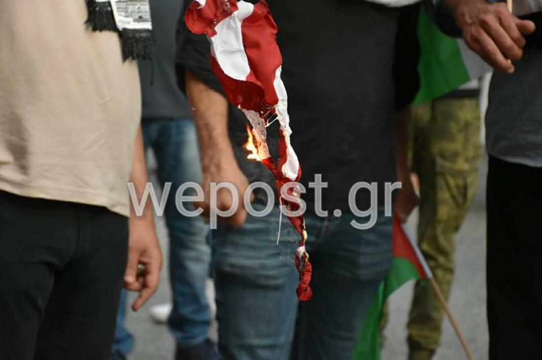 Πορεία στη Θεσσαλονίκη για την Γάζα: Έκαψαν σημαίες των ΗΠΑ και του Ισραήλ