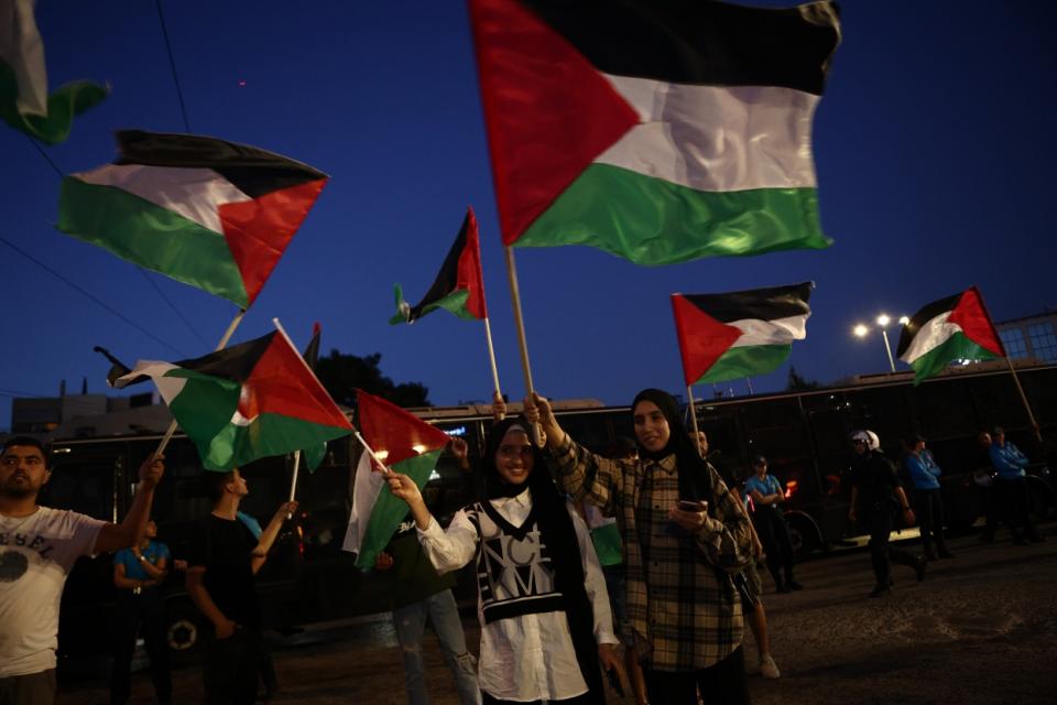 Πιο συγκεκριμένα, παλαιστίνιοι που ζουν στην Ελλάδα, οργανώσεις και συλλογικότητες πραγματοποίησαν πορεία προς την πρεσβεία του Ισραήλ, με βασικό σύνθημα να σταματήσει η επίθεση του ισραηλινού στρατού στη Γάζα και να υπάρξει ανεξάρτητο παλαιστινιακό κράτος.