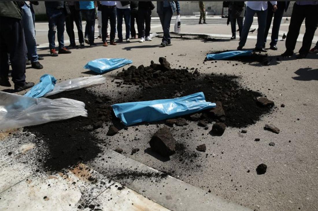 Λιγνίτη μπροστά στο μνημείο του Αγνωστου Στρατιώτη οι εργαζόμενοι της φτάνοντας στη Βουλή, μετά την πορεία διαμαρτυρίας που ξεκίνησε από τα γραφεία της εταιρείας στην οδό Χαλκοκονδύλη και κατευθύνθηκε προς τη Βουλή, όπου σήμερα ψηφίζεται το νομοσχέδιο του Γιώργου Σταθάκη. Οι εργαζόμενοι της ΔΕΗ διαμαρτύρονται για την πώληση λιγνιτικών μονάδων της επιχείρησης.