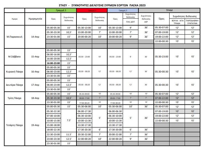 Τροποποιήσεις στον αριθμό των δρομολογίων, τη συχνότητά τους και τις ώρες απόσυρσης στα αμαξοστάσια, έχουν τεθεί σε εφαρμογή από τις 14/4/2023 έως και την Τρίτη του Πάσχα, όπως ανακοίνωσε η ΣΤΑΣΥ και ο ΟΑΣΑ.