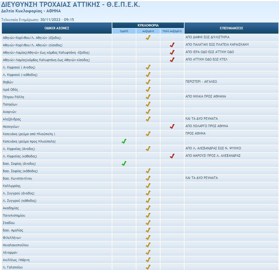 Πού έχει κίνηση: Στο κόκκινο πολλοί βασικοί οδικοί άξονες της Αττικής λόγω της κακοκαιρίας.