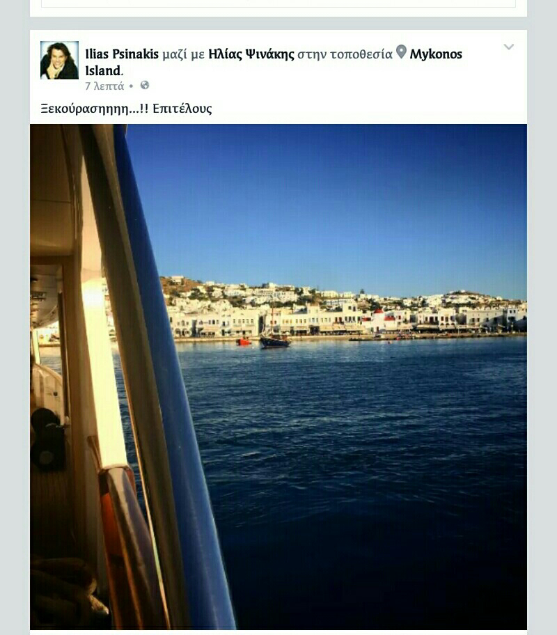 Εδώ Ηλίας, εκεί Ηλίας, πού είναι ο Ηλίας Ψινάκης; Πού αλλού; Στη Μύκονο και ξεκούραστος. Μετά το ταξίδι στην Κίνα, και την «κατάρρευση» στο Ντουμπάι κατά την επιστροφή του, πήγε σε αγαπημένο προορισμό για να ξεκουραστεί.