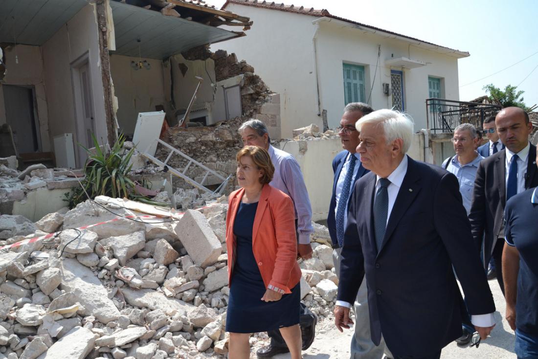 Την ανάγκη «η Ευρωπαϊκή Ένωση να φτάσει μέχρι τα όρια των θεσμικών της δυνατοτήτων για να μπορέσει να βοηθήσει στην πραγματοποίηση του έργου της αποκατάστασης των σεισμόπληκτων της Βρίσας και των άλλων 12 οικισμών» τόνισε σήμερα το απόγευμα ο Πρόεδρος της Δημοκρατίας Προκόπης Παυλόπουλος, κατά τη διάρκεια της έντονου συμβολισμού επίσκεψής του στο χωριό της νότια Λέσβου που ισοπεδώθηκε από τον ισχυρό σεισμό το μεσημέρι της 12ης Ιουνίου. Ένα σεισμό που πλέον επίσημα καταγράφεται ως ο σεισμός της Λέσβου με ένταση τους 6,3 βαθμούς της κλίμακας Ρίχτερ. Ο κ. Παυλόπουλος σημείωσε την ανάγκη προστασίας του δομημένου περιβάλλοντος της Βρίσας που επλήγη από το σεισμό και το οποίο, όπως είπε, αποτελεί πολιτιστική κληρονομιά του νησιού, της Ελλάδας αλλά και όλης της Ευρώπης.