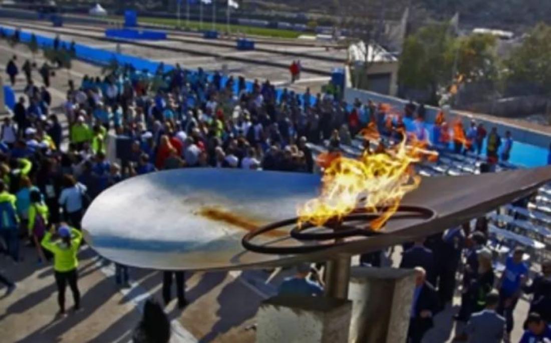Ο 4ος Ολυμπιονίκης του Τόκιο στο επί κοντώ Εμμανουήλ Καραλής και ο γιατρός Θεόδωρος Λουκόπουλος άναψαν τον βωμό δίπλα στην αφετηρία του Μαραθωνίου, που αύριο θα πλημμυρίσει από τους χιλιάδες δρομείς που θα συμμετάσχουν στον αγώνα.