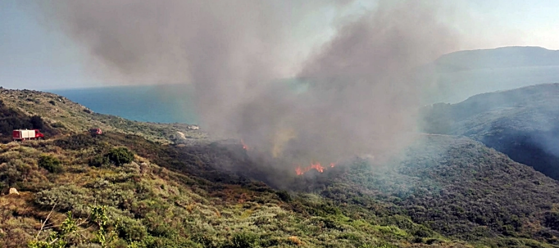Σύμφωνα με το ΑΠΕ, η φωτιά καίει σε δύσβατο σημείο, ενώ μαρτυρίες αναφέρουν ότι η μία εστία είναι κοντά στο χωριό. Οι φλόγες ενισχύονται από τους δυνατούς ανέμους που πνέουν στην περιοχή .