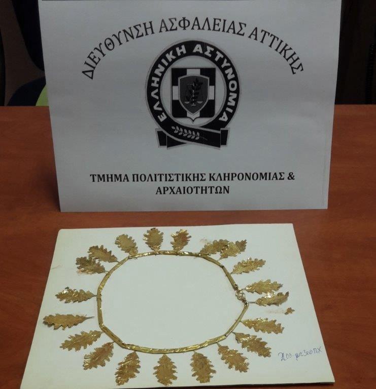 Την υπόθεση χειρίστηκαν αστυνομικοί της Υποδιεύθυνσης Προστασίας Περιουσιακών Δικαιωμάτων, Πολιτιστικής Κληρονομιάς και Περιβάλλοντος, οι οποίοι μετά από πολύμηνες αστυνομικές έρευνες, κατάφεραν να διακριβώσουν τα στοιχεία τριών ατόμων, τα οποία κατείχαν παράνομα αρχαίο χρυσό στεφάνι, που προόριζαν για πώληση στη χώρα μας ή το εξωτερικό, έναντι μεγάλου χρηματικού αντιτίμου.