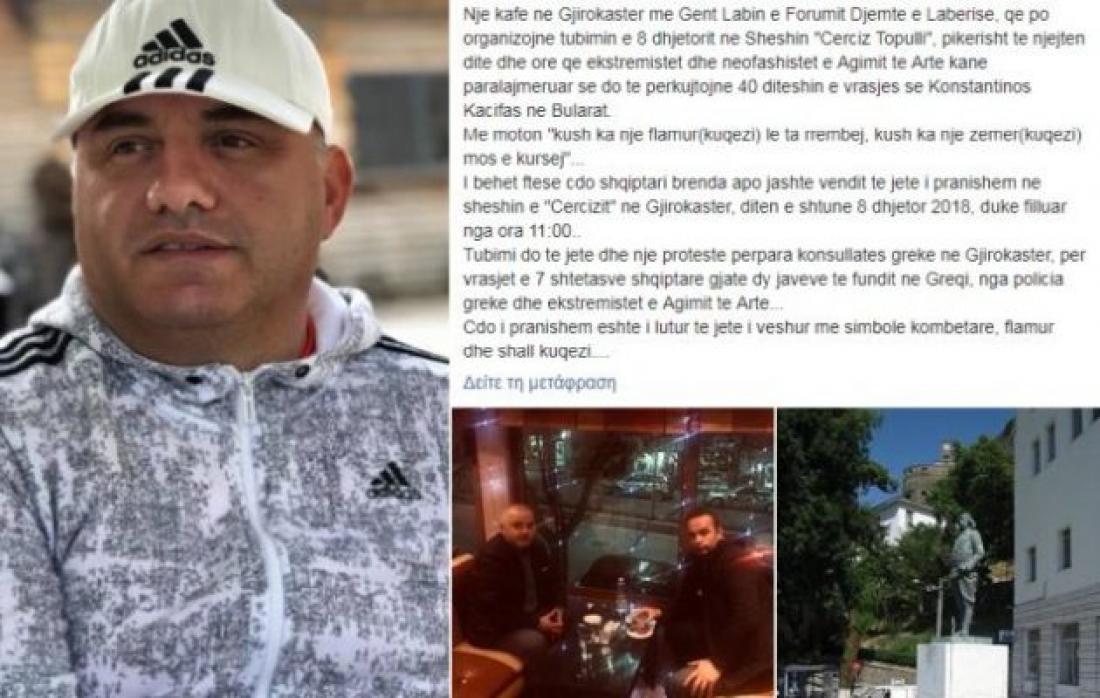 Ο καλεί τους συμπατριώτες του να διαδηλώσουν έξω από το Ελληνικό Προξενείο για τις επτά δολοφονίες Αλβανών τους τελευταίους μήνες στην Ελλάδα.