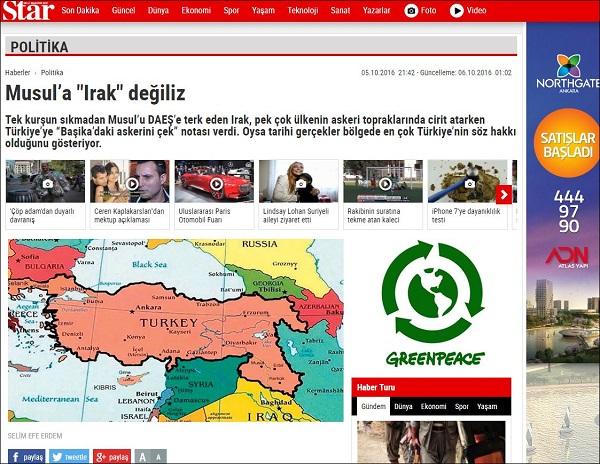 Ένα άκρως προκλητικό δημοσίευμα φιλοξενείται σήμερα Παρασκευή στην τουρκική εφημερίδα, Star, σχετικά με τα σύνορα που θα είχε η Τουρκία αν δεν ίσχυε η Συνθήκη της Λωζάννης. Συγκεκριμένα, η εφημερίδα, η οποία θεωρείται φίλα προσκειμένη στον Πρόεδρο της χώρας, Ρετζέπ Ταγίπ Ερντογάν, δημοσιεύει έναν χάρτη, όπου η Θεσσαλονίκη, η Χαλκιδική, η Θράκη, η Κρήτη, η Κύπρος και πολλά από τα νησιά του Αιγαίου είναι τουρκικά και όχι ελληνικά.