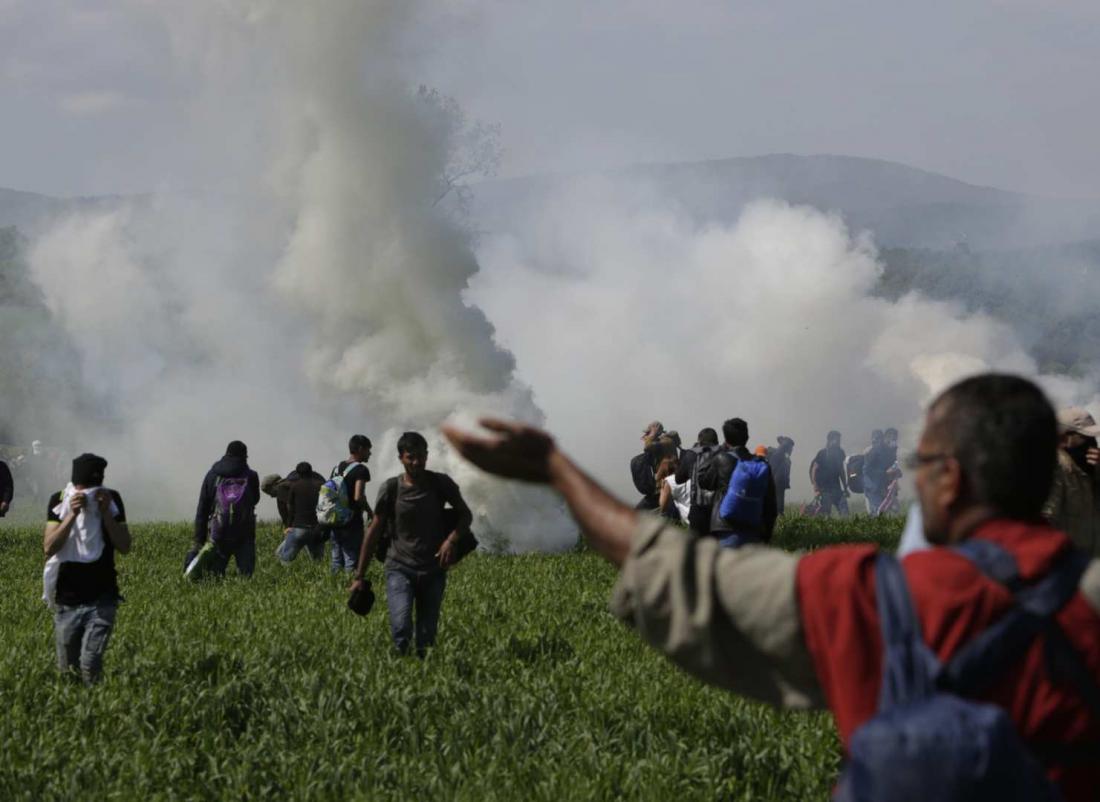 Νωρίτερα το πρωί μία ομάδα προσφύγων που κινήθηκε μεταξύ των σιδηροδρομικών γραμμών και του φράχτη στα σύνορα, άρχισε να πετάει πέτρες προς τους Σκοπιανούς αστυνομικούς, οι οποίοι απάντησαν με εκτεταμένη χρήση δακρυγόνων, χειροβομβίδων κρότου-λάμψης, ενώ ορισμένοι έκαναν λόγο και πάλι για χρήση πλαστικών σφαιρών εναντίον του πλήθους.