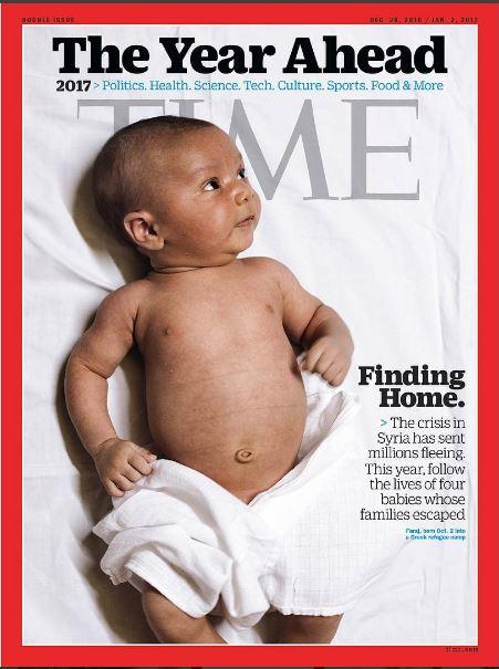 Η επιλογή αυτή έγινε στο πλαίσιο της καμπάνιας Time Finding Home στην οποία δημοσιογράφοι του περιοδικού θα καταγράψουν τη ζωή των τεσσάρων μωρών που γλίτωσαν τη φρίκη του πολέμου.