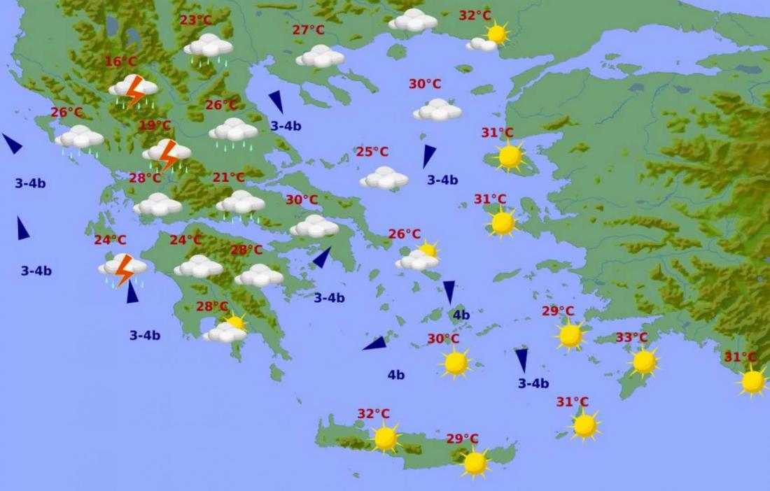 2. Το Σάββατο (10-09-2016) και την Κυριακή (11-09-2016) με μειωμένη γενικά ένταση κυρίως τις απογευματινές ώρες τα νησιά του Ιονίου, η Ήπειρος, η Στερεά, η Δυτική και Κεντρική Μακεδονία και η Θεσσαλία.
