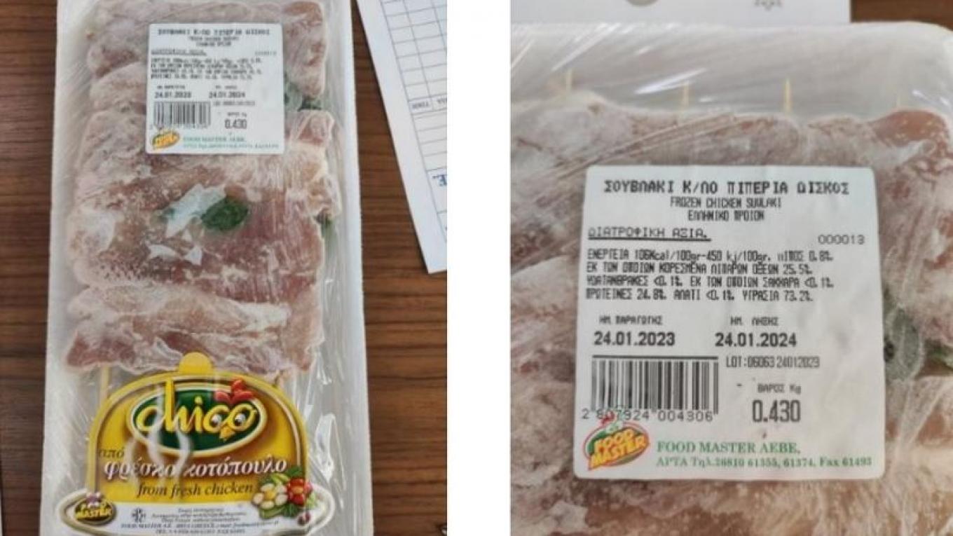 Συγκεκριμένα, ο ΕΦΕΤ και ειδικότερα η Περιφερειακή Διεύθυνση Ηπείρου, κατά τη διενέργεια ελέγχων προέβη σε δειγματοληψία κατεψυγμένου παρασκευάσματος από κρέας κοτόπουλου, με τα στοιχεία: «ΣΟΥΒΛΑΚΙ ΚΟΤΟΠΟΥΛΟ ΚΤΨ ΜΕ ΠΙΠΕΡΙΑ ΔΙΣΚΟΣ - Chico από φρέσκο κοτόπουλο » με ημερομηνία παραγωγής 24-01-2023 και ημερομηνία λήξης 24-01-2024, που παράγεται από την εταιρεία