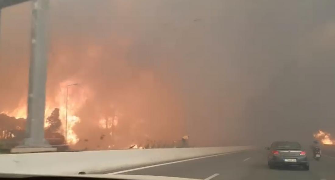 Πυρκαγιά Κινέτα: Κλειστή η Εθνική Οδός:Μεγάλο μποτιλιάρισμα ανάμεσα στις φλόγες!