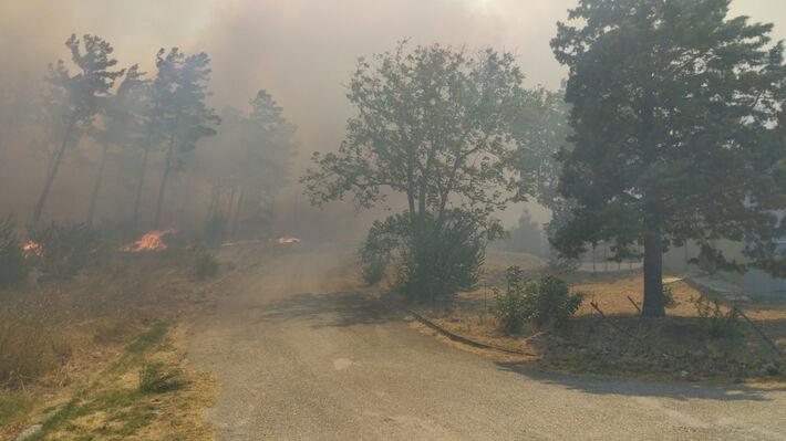 Η φωτιά έχει μπει στα χωριά Αμφιτρίτη και Μαΐστρος που εκκενώθηκαν, ενώ ήδη μηνύματα εκκένωσης έχουν σταλεί για τις περιοχές Άβαντας, Μοναστηράκι και Δορίσκο.