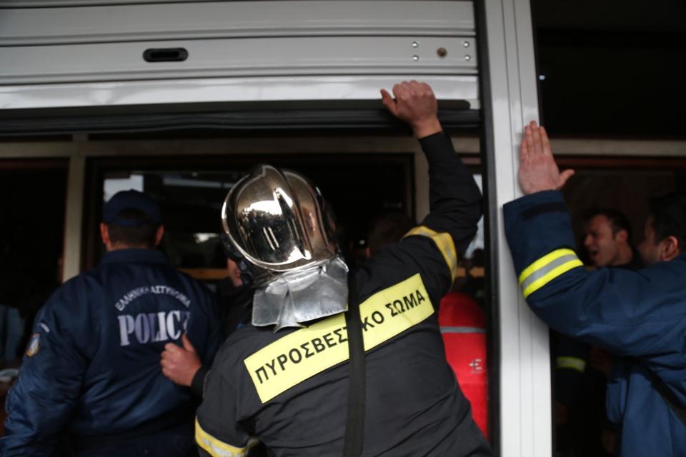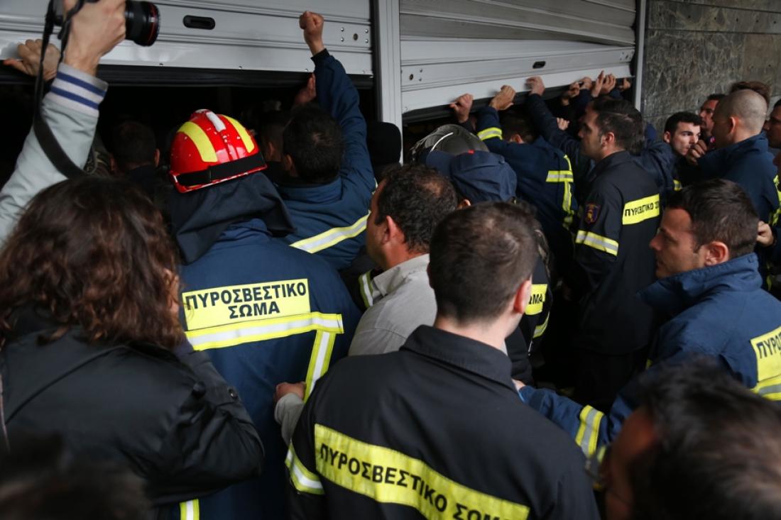 Πυροσβέστες έσπασαν την είσοδο του υπουργείου όταν είδαν μπροστά τους ως φραγμό μία διμοιρία των ΜΑΤ