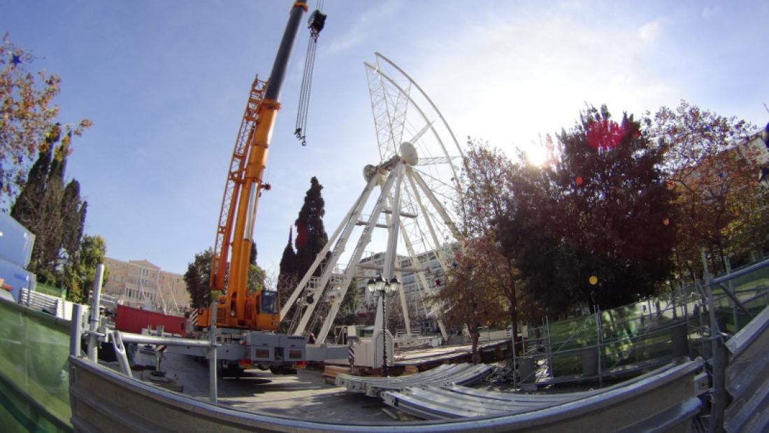 Μετά το φιάσκο των περασμένων ημερών, ειδικό συνεργείο προχωρά στην αποσυναρμολόγηση της πανύψηλης Ρόδας παρατήρησης που είχε τοποθετηθεί στο Σύνταγμα.