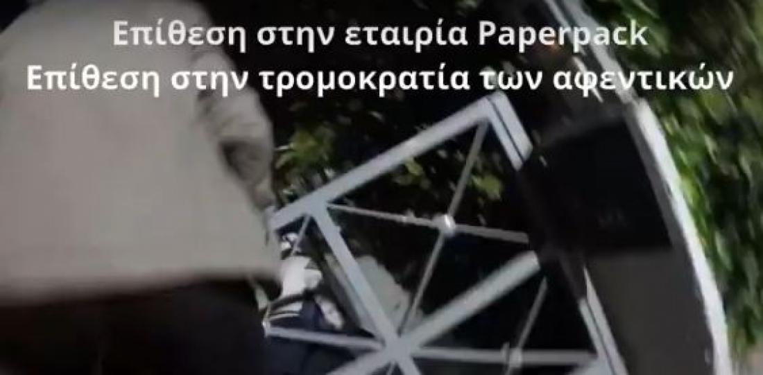Επίθεση στα γραφεία εταιρείας συσκευασίας, στην Κηφισιά, έκαναν μέλη του «Ρουβίκωνα » λίγο μετά τις 6 το πρωί της Κυριακής. Τα μέλη της συλλογικότητας, φορώντας κράνη και κρατώντας βαριοπούλες έσπασαν την πόρτα της εισόδου, ενώ έριξαν και μπογιές.