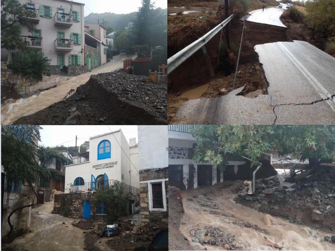 Η βροχόπτωση της συγκεκριμένης νύχτας προκάλεσε εκτεταμένες καταστροφές στο νησί, που το μέγεθος τους αποκαλύφθηκε το πρωί της Τρίτης και το σκηνικό θυμίζει «Αποκάλυψη».